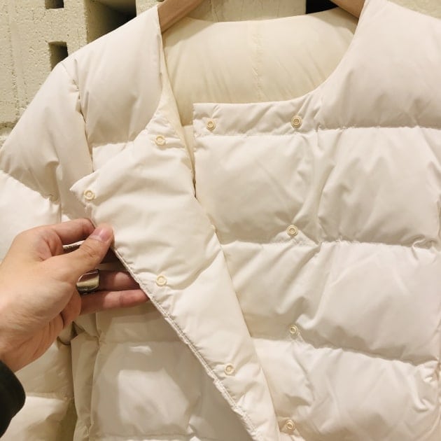 インナーダウンとしての汎用性、暖かくなれば、カットソーやシャツ、ワンピースの上からでも良さそうです。期待は膨らむばかり、店頭でも気にされるお客様がちらほらと。是非、お早めに。