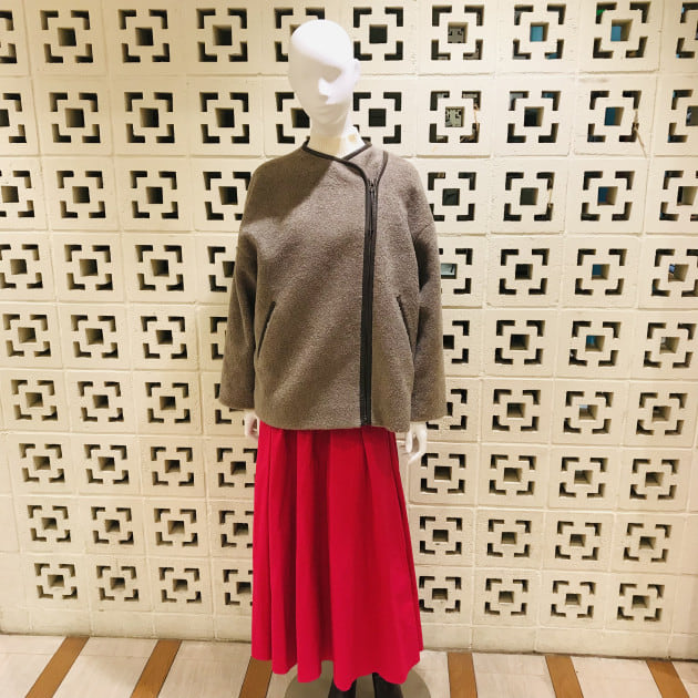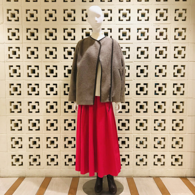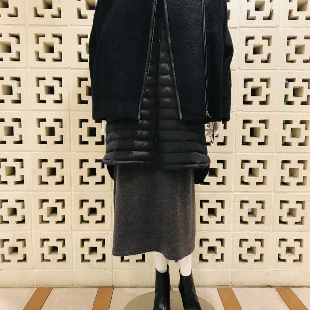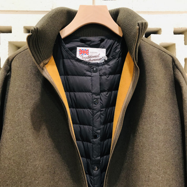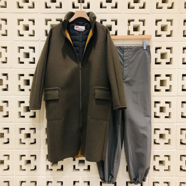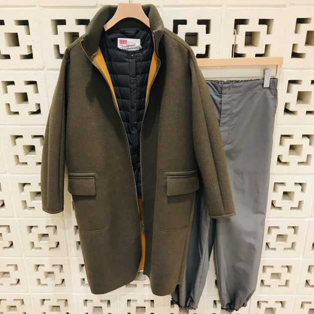 ご好評いただいております、パディングジップコートとのレイヤードスタイル。中綿アウターとの合わせ、春先まで着ていただけるかと思います。