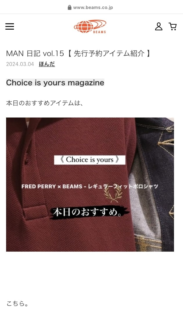 ビームス 鹿児島の冨迫です。