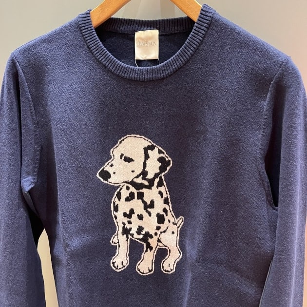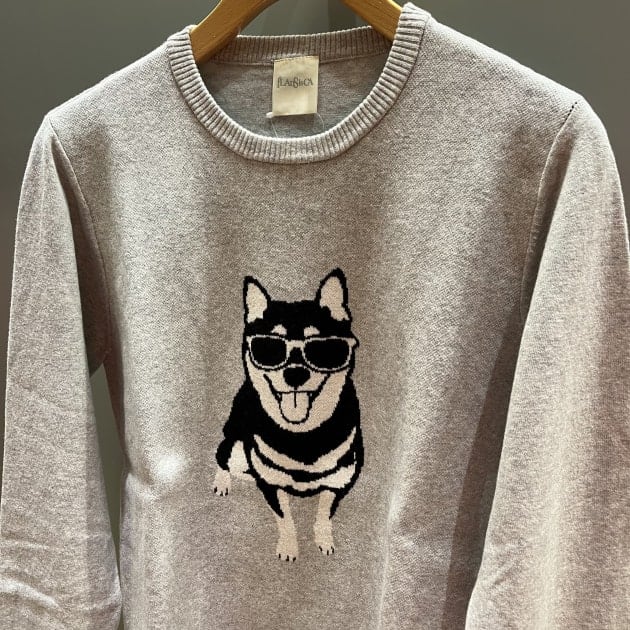 こちらのニットといえば可愛らしいワンちゃんがフロントにあり女性の方だったり、大人の男性にも好評頂いておりますアイテムです。