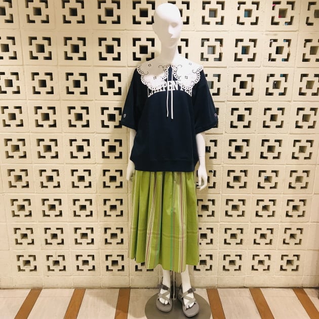 トップの程良いフィット感から、身体のラインを拾わないゆとりあるシルエットへ繋がっていきます。