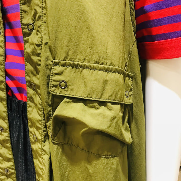 外から目立たない、スラッシュポケットが両サイドに付きます。実用性に優れる点も、ポイント高いです。