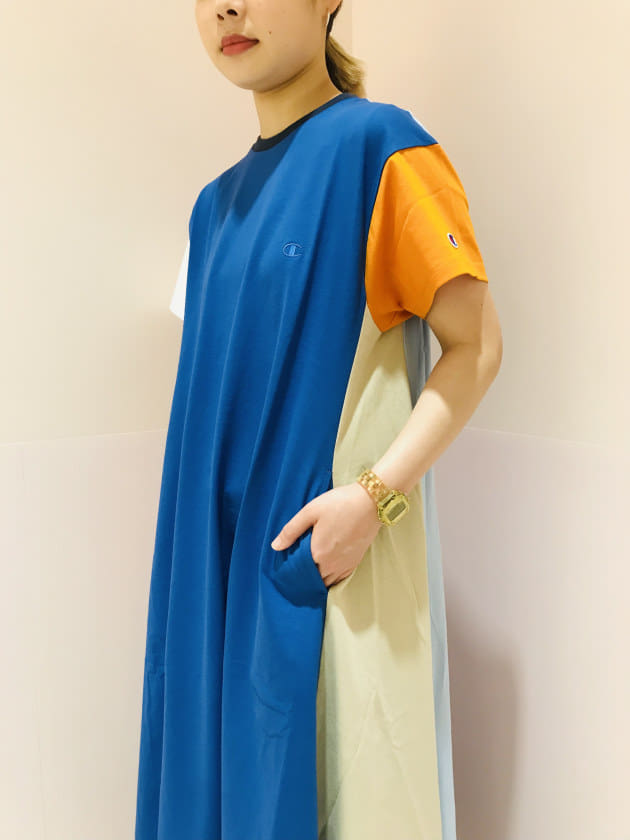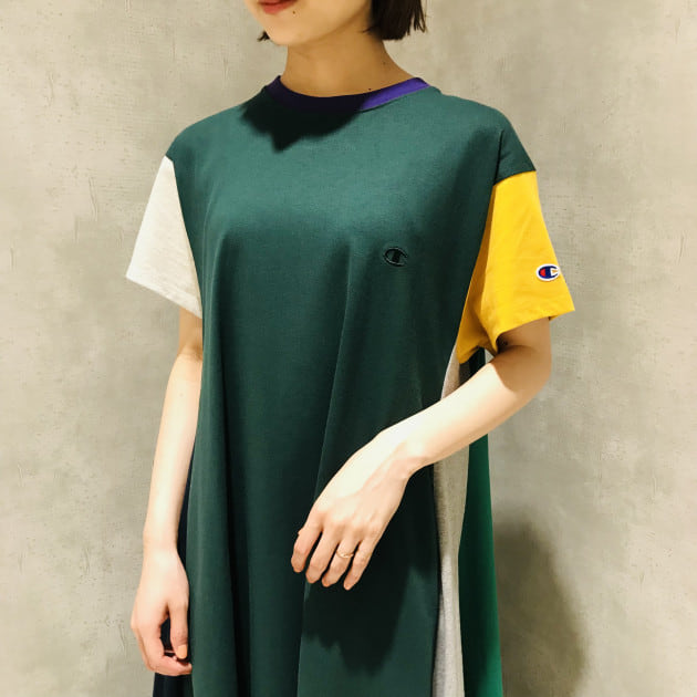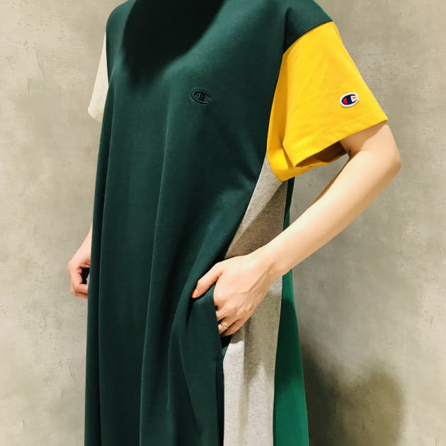 夏に向けて活躍間違いなしの《Champion》×《BEAMS BOY》の別注ショートスリーブワンピース。柔らかなコットン素材に、個性豊かなカラーリングが目を惹く一品です。