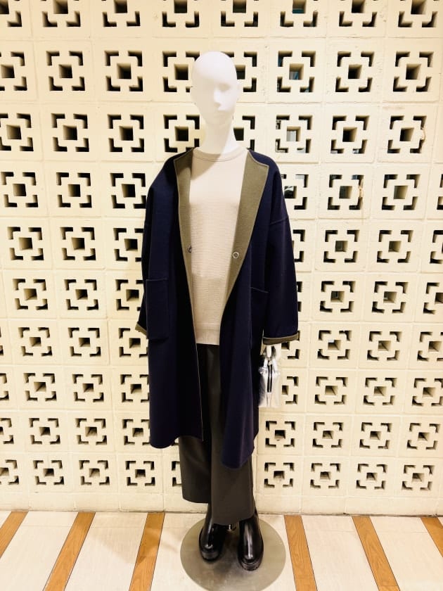 勿論今の時期は、アウターのインにもお勧めです。《Demi-Luxe BEAMS》定番の、ゆったりとしたリバーシブルコートを合わせて。