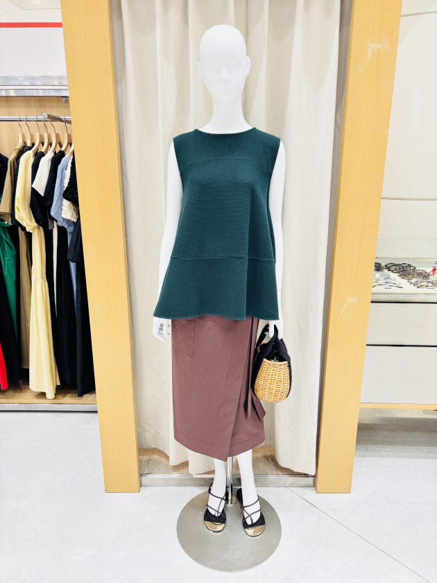 《BEAMS BOY》定番、こちらはセール商品ではありませんが、オールシーズンお使いいただけるラッププリーツデニムスカートを合わせて。
