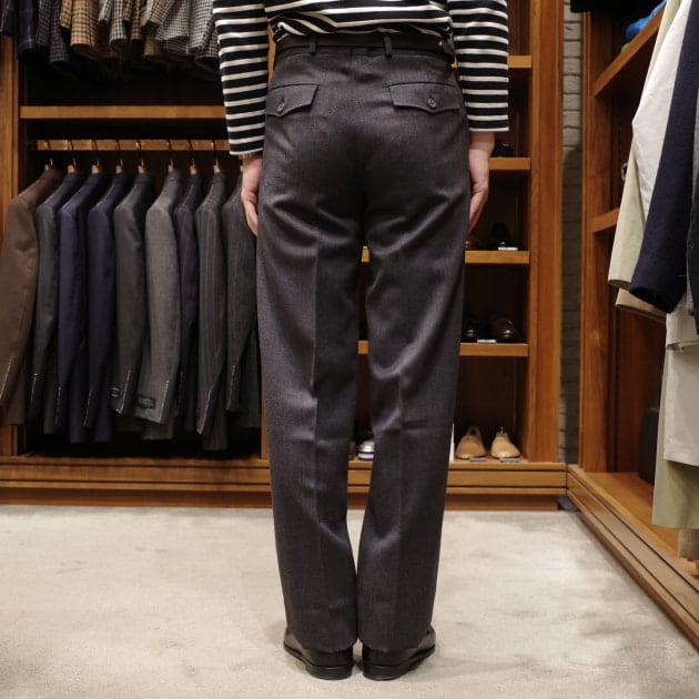 同じ2インプリーツですが、履いた時に圧倒的にこちらの方がウエスト周りが細く、股上が浅く感じました。