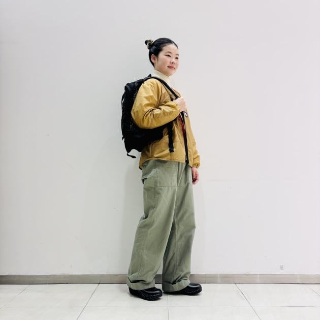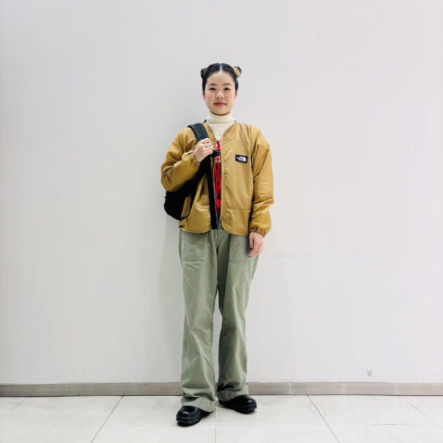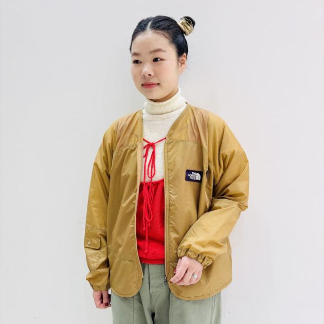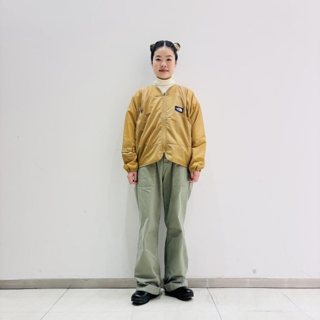 ジレやジャケットなどに合わせる時は、ふわっとタックインした着こなしがお勧めです。