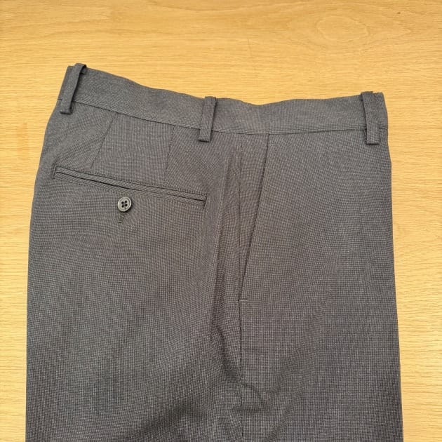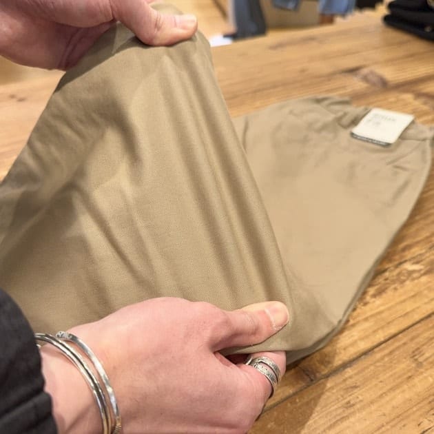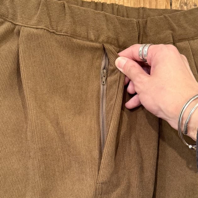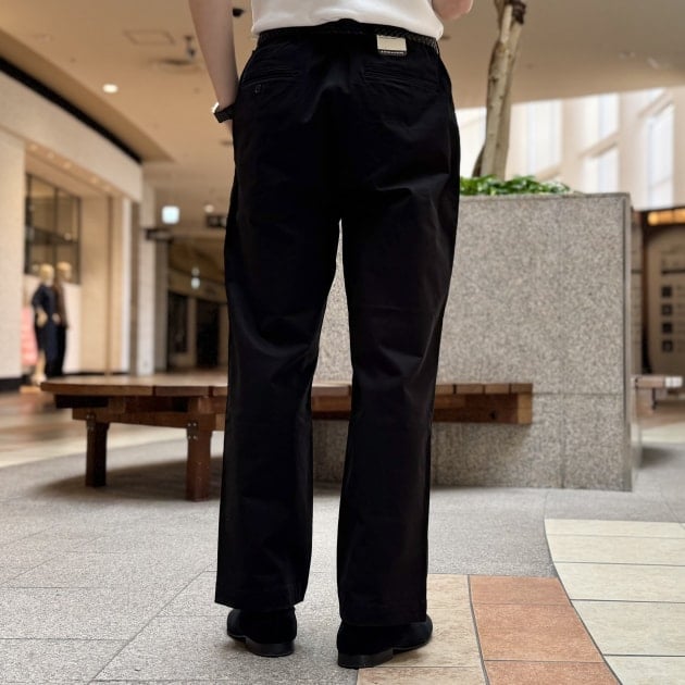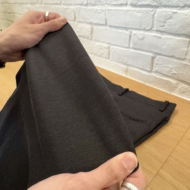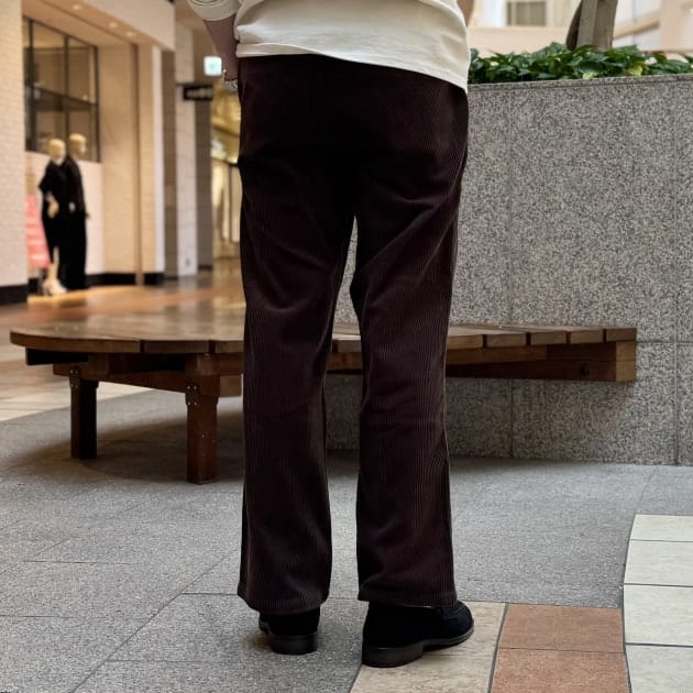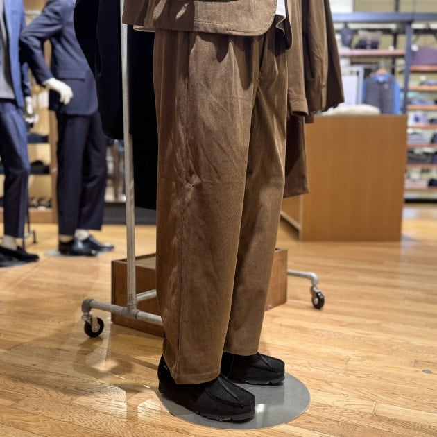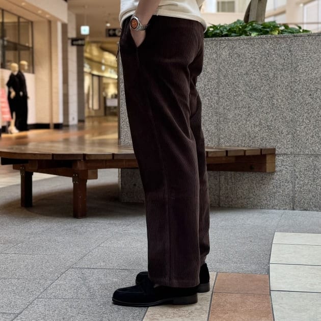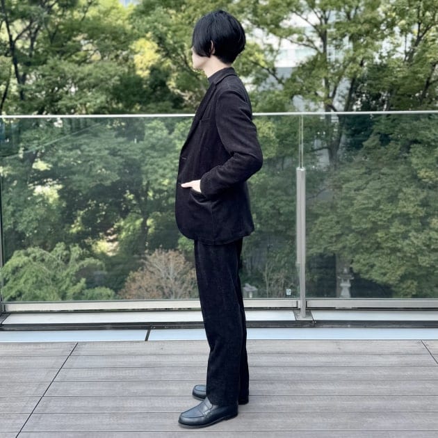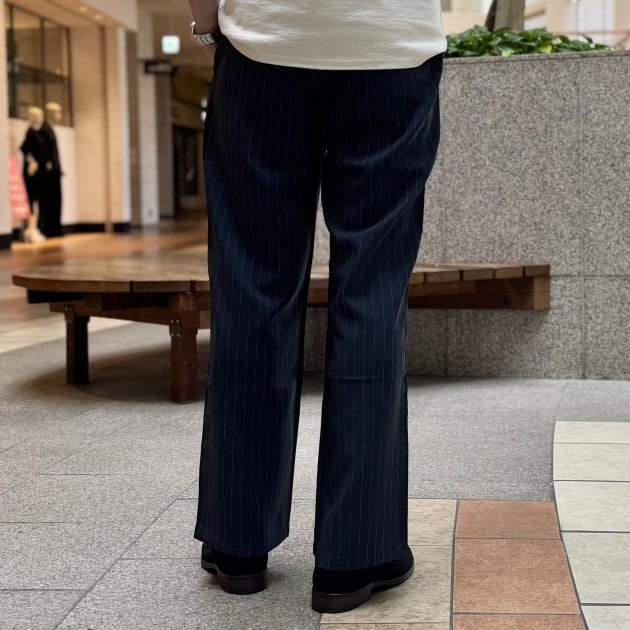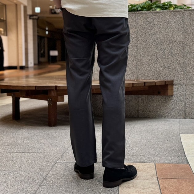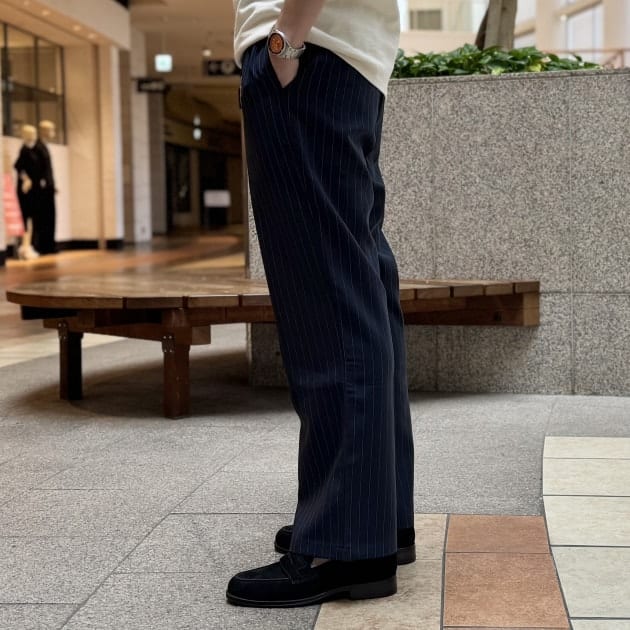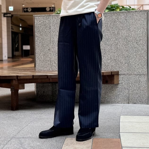 ボトムスは程よくゆとりのあるワイドなシルエットでお仕事の服装とはまた違ったシルエットで着用可能です。