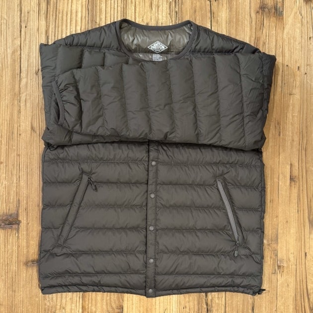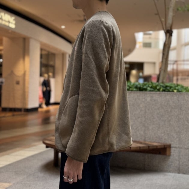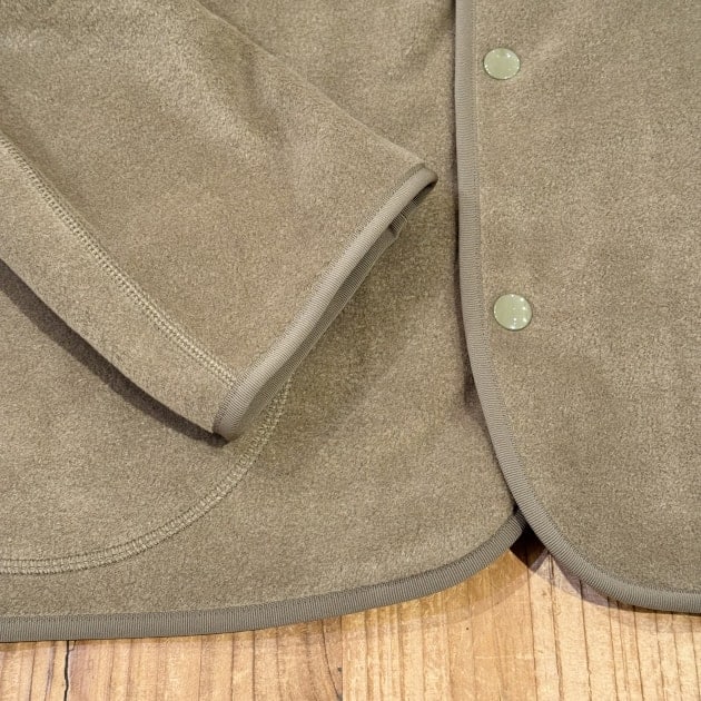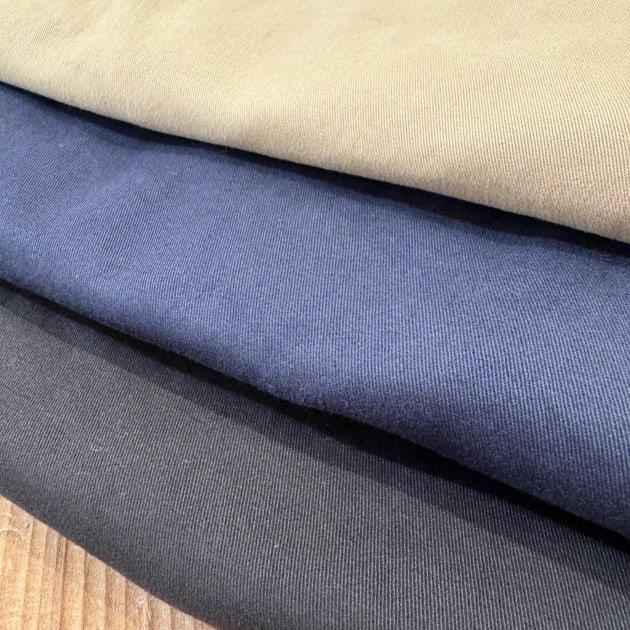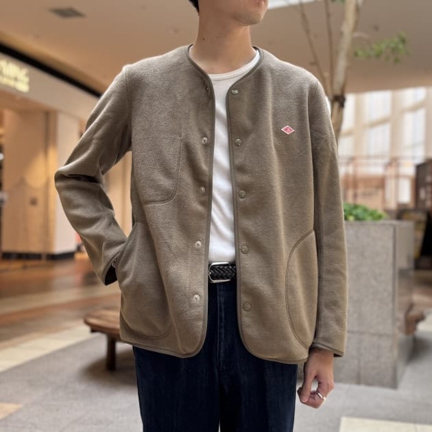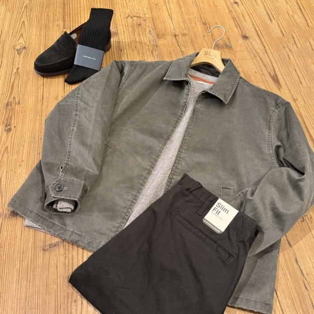トップは素材感に変化を付けつつ、グラデーションになるようなカラーのブルゾンを選びネップを際立たせています。