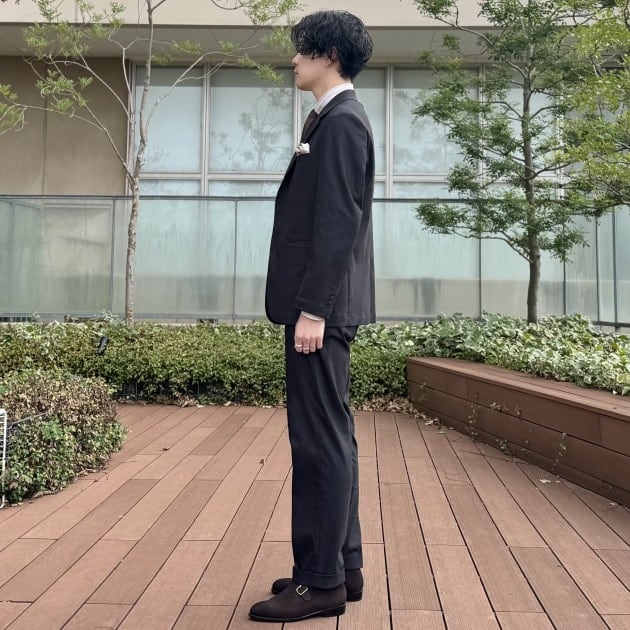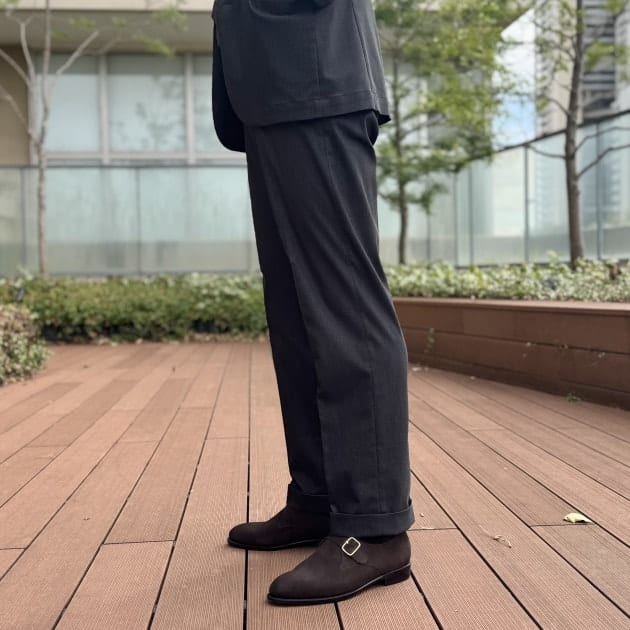 パンツ、ソックス、シューズを同色で纏め足長効果も演出しスタイルアップもポイントです。