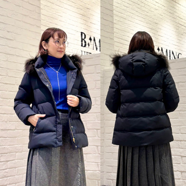 王道のネイビーカラーのツイードフレアプルオーバーとツイードタイトスカートの大人可愛い上品セレモニースタイル。それぞれ単品でのお取り扱いなので、センタープレスパンツと合わせてこんな着回しも出来ます。