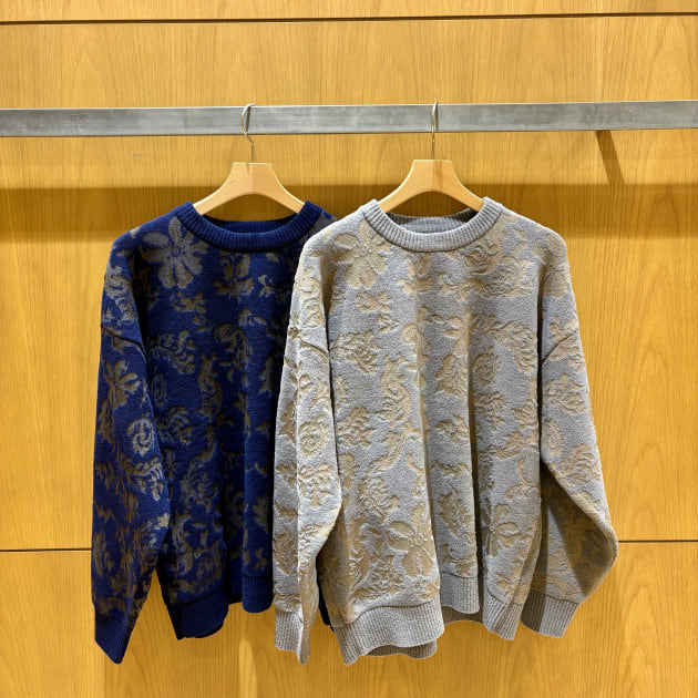 フラワージャガード柄がポイントのクルーネックデザインで、