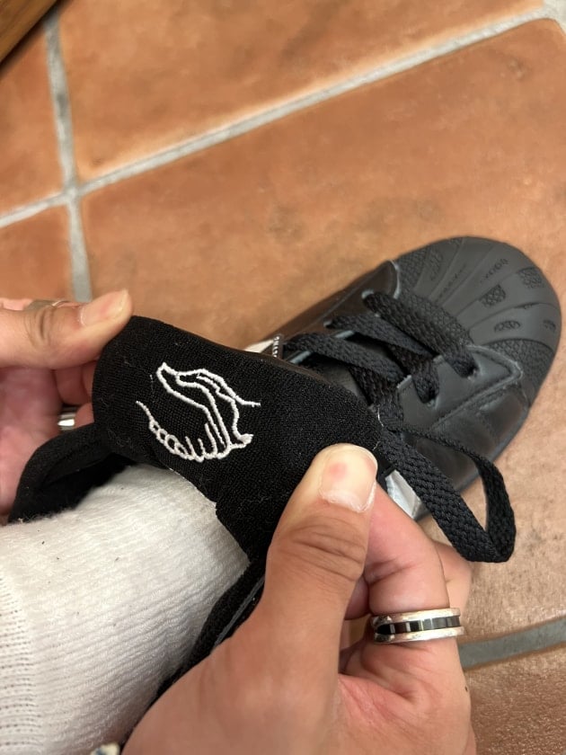 シュータン裏にあるハンドシェイクマークは、adidasの最上級プロダクト「コンソーシアム」のロゴマークが特別に刺繍がされている仕様。