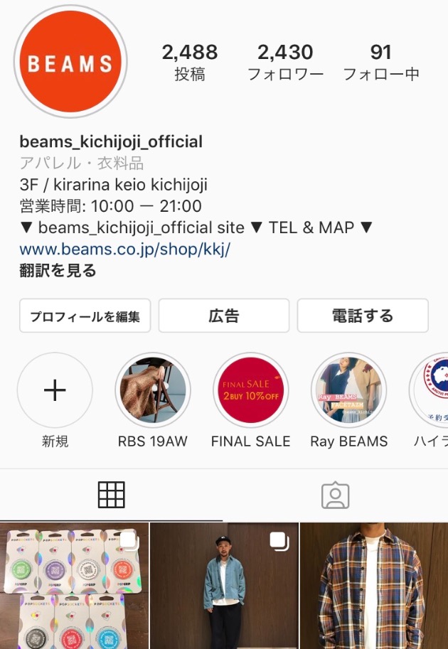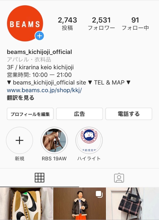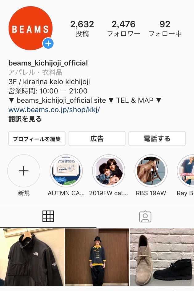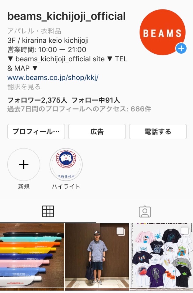 ビームス 吉祥寺のInstagram!画像をクリック!