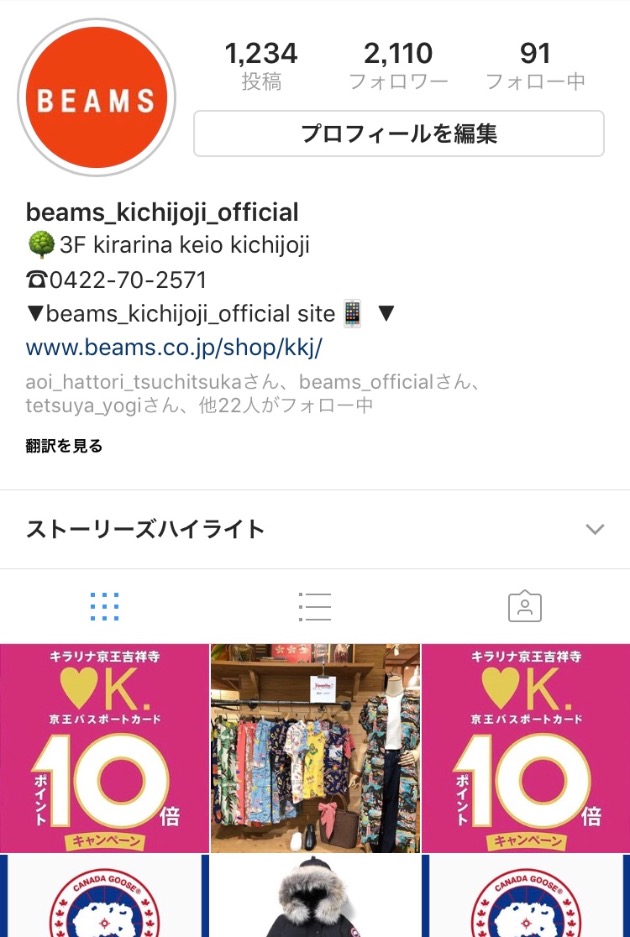 ビームス 吉祥寺のInstagram!画像をクリック!