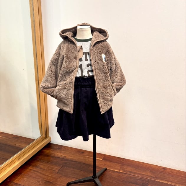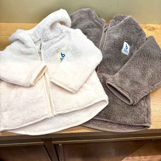 ウインドブレーカーとフリースの“いいとこ取り”のようなアイテム。表地はナイロン素材で“はっ水加工”付き。フードとボディの裏地はフリースで暖かです。フードは取り外しが可能なので、通園・通学にも良いですね♪