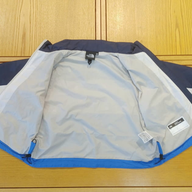↑の画像右側はインナージャケットのポリエステル・タフタ面、左側はインナージャケットのフリース面。フリース面は身頃がフリースで、袖は反対面と同じポリエステル・タフタとなっています。フリース面を表にした場合、首の後ろにタグが見えますので、気になる方はカットしてお召しください。