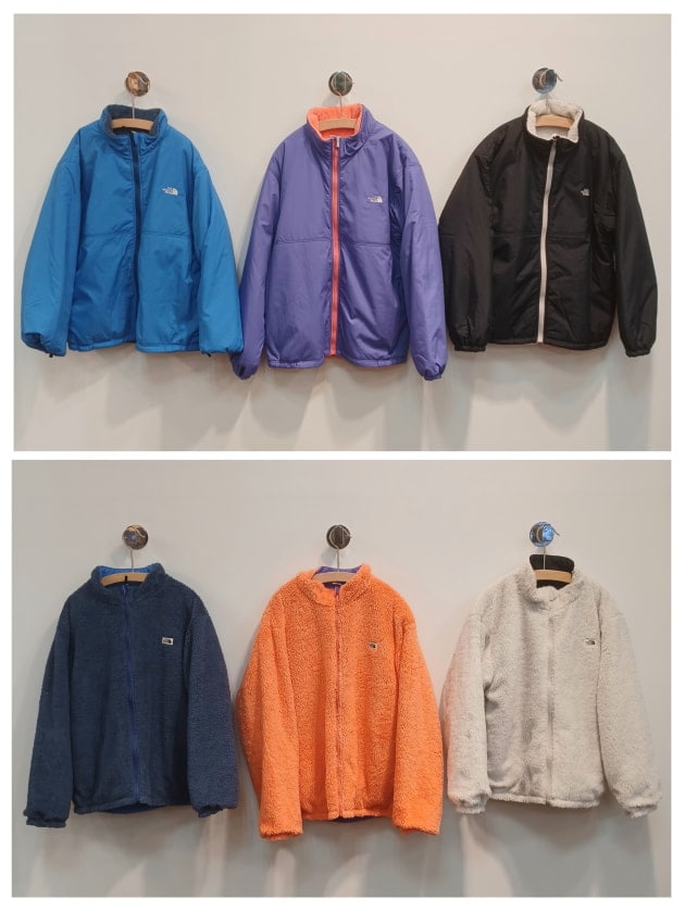 リバーシブルで着用できる薄中わた入りのジャケット。ナイロンジャケットを裏返すとフリースジャケットに早変わり。見た目の印象も大きく変わって、1着あるとコーディネートにも幅がでますね♪