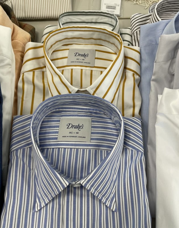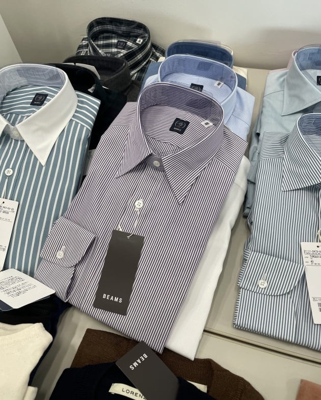 このストライプブルゾンは以前展開していたザ・ジジ。確かビームスのみの配色だった記憶が。この日の東京は午後から雨との予報だったので、スーツで行きたかったお客様はカジュアルにシフトチェンジ。土地勘なんてゼロですから、雨が確定しているならば快適に過ごせた方が良いですよね。