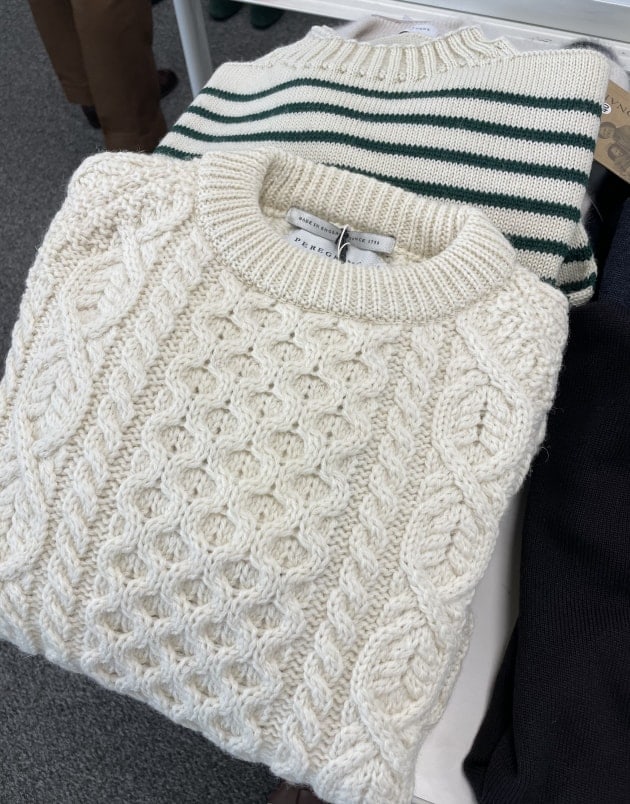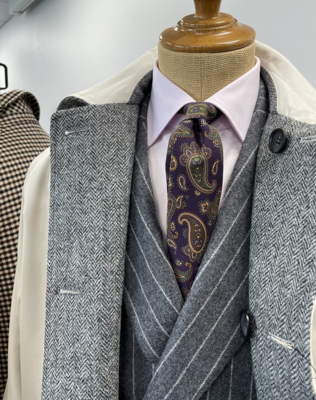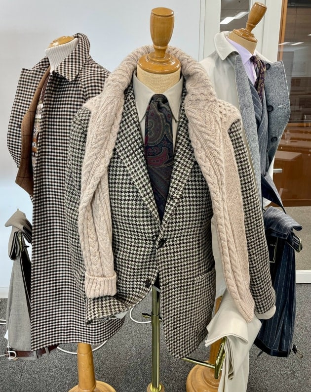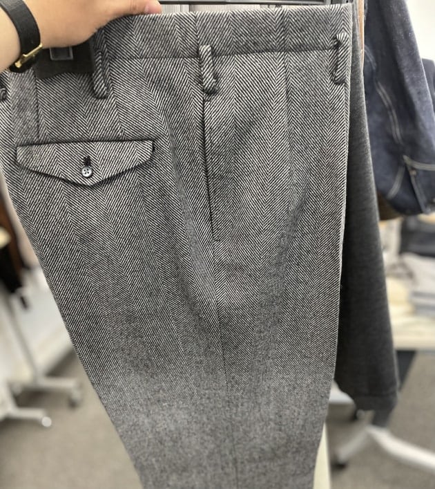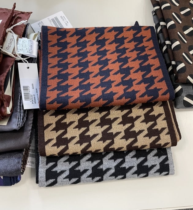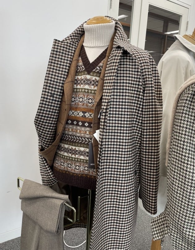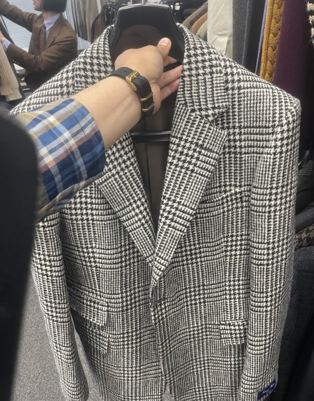 グレンプレイド系スーツやジャケットなどの柄アイテムも充実していました。
