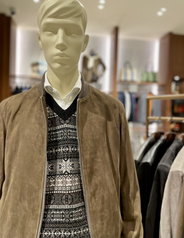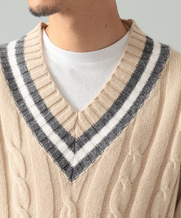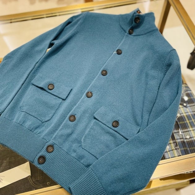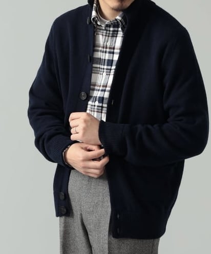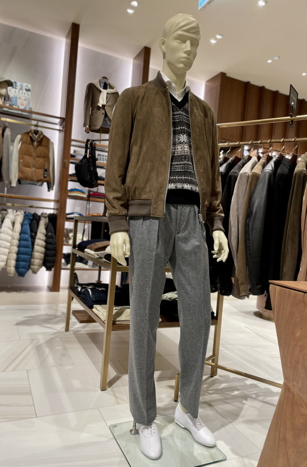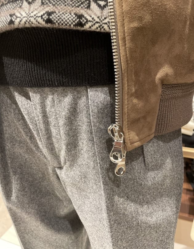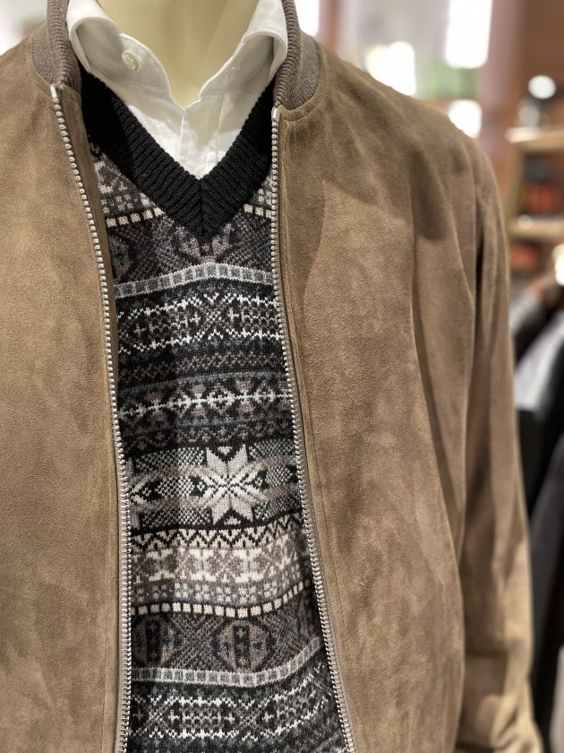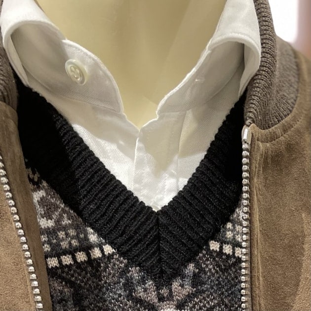 寒いときはニットベストを挟むとまた違う印象を愉しむことができます。