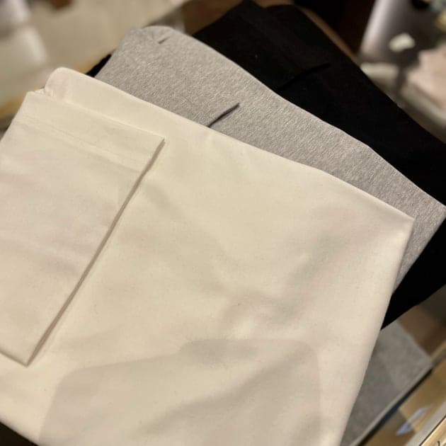 グレーは洗濯を3回したもの、下に重ねたパープルは未洗濯。 はい。