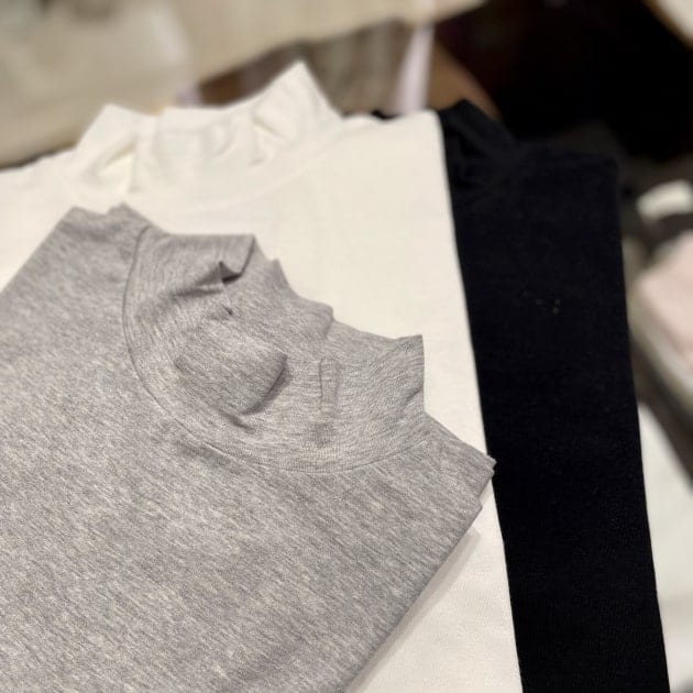 ジャージータイプのモックネック(ハイネックのことです)や、