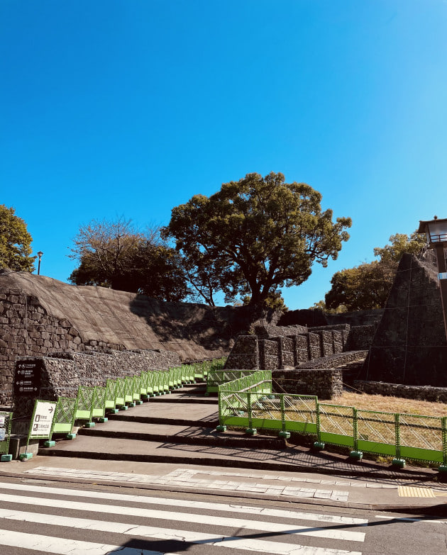 ウォーキングおじさん、熊本城の三の丸前駐車場付近を歩く。カメラマンを気取りながら新町方面へ。
