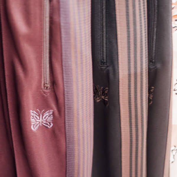 〈NEEDLES〉のアイコンでもある蝶の刺繍と存在感のあるサイドラインがアクセント。