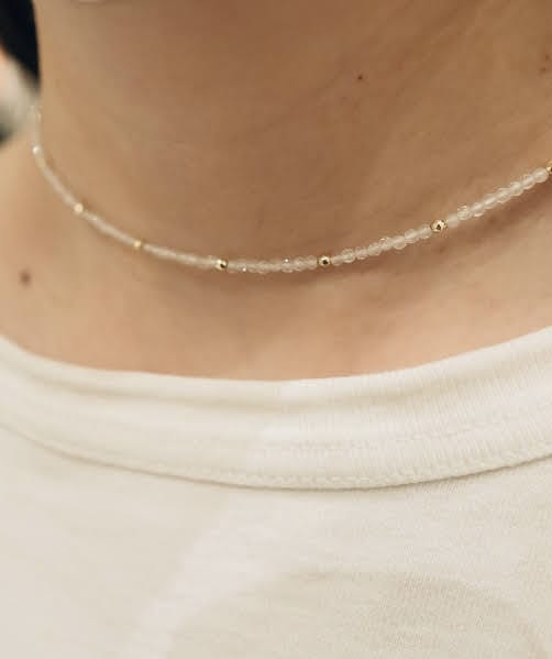 淡水パール、水晶、ゴールドヘマタイトのパーツが使用されたチョーカー。