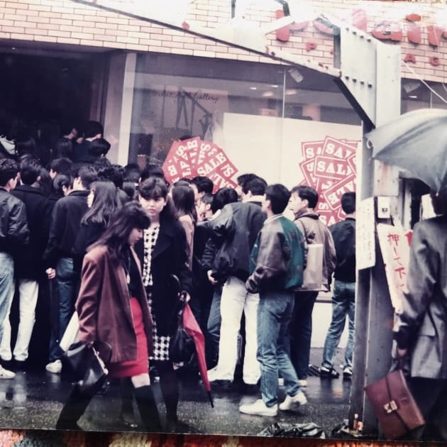 商業施設『ポレエル パサージュ』からスタートした、ビームス 熊本の1988年1月15日SALE風景の写真から落とし込みTシャツを作りました。