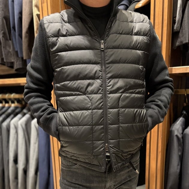 ニットとダウンがミックスされたコンビブルゾン。腕と背中はニット、フロントボディーにダウン内蔵。実用的でスタイリッシュ。