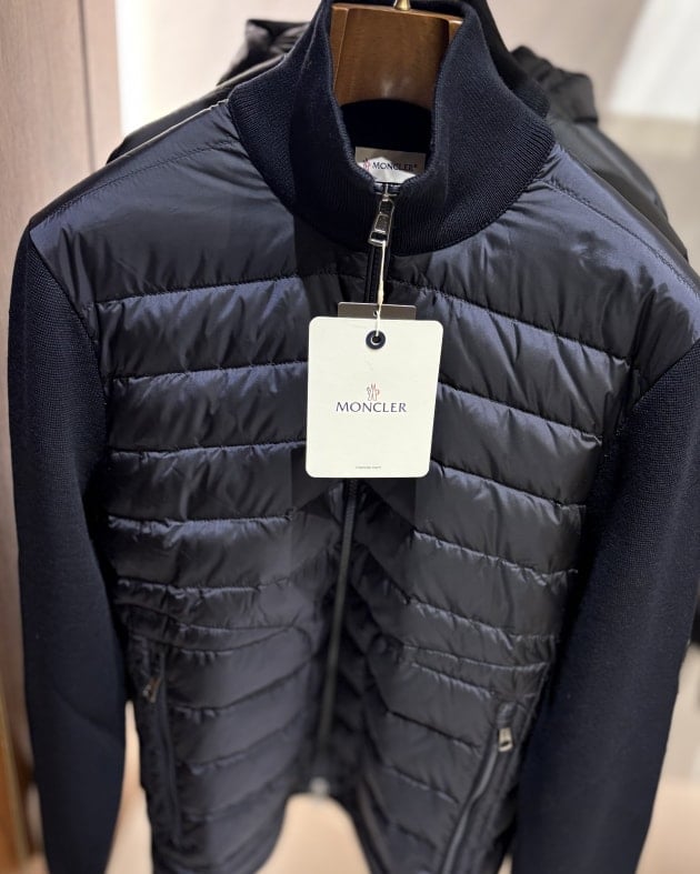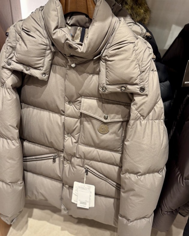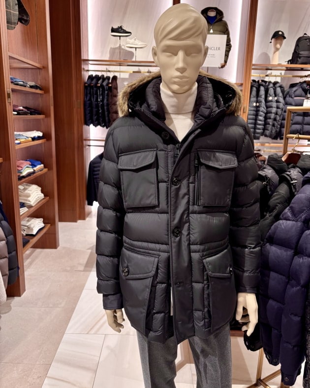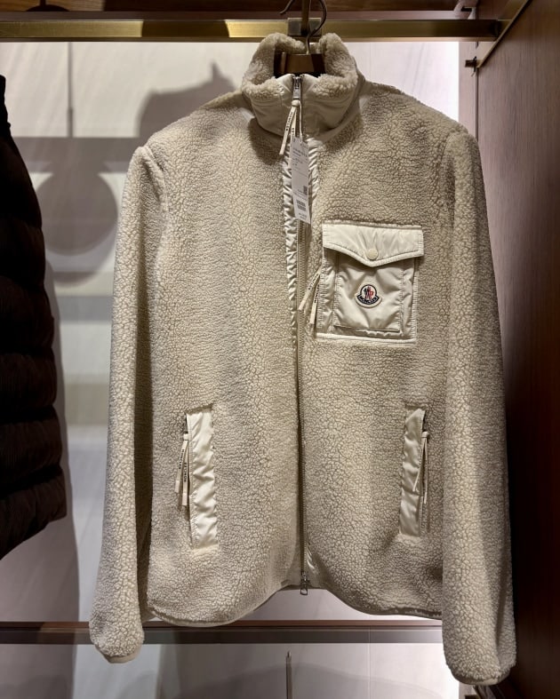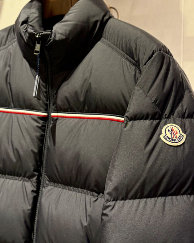 これはモンクレールらしいデザイン。トリコロールパイピングも丁寧にデザインしてあります。生地すべすべ。写真からも伝わってきますね。