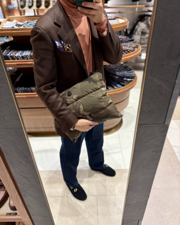ダークカラーが多い中、ブラウンカラーも。腕のマークがブラック。シャープな印象で都会的。