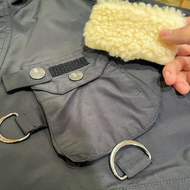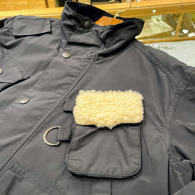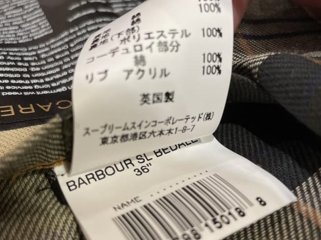 ロゴの大きさは、さすが大人ブランドのBabourです。
