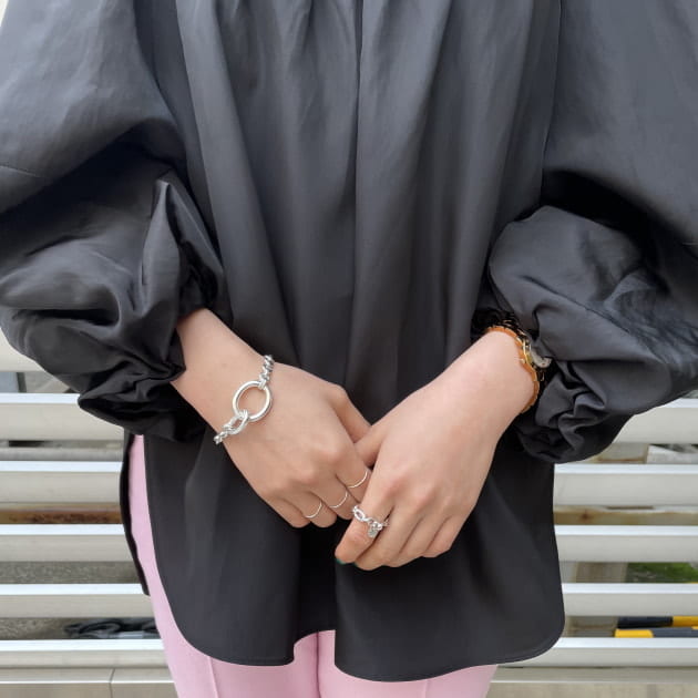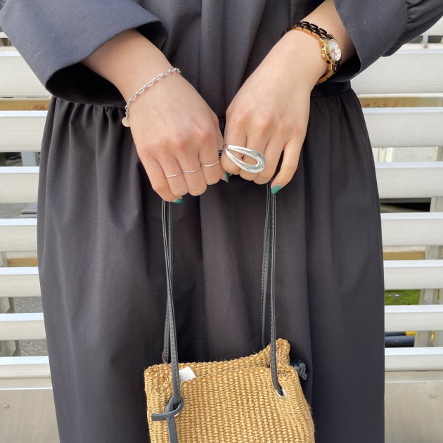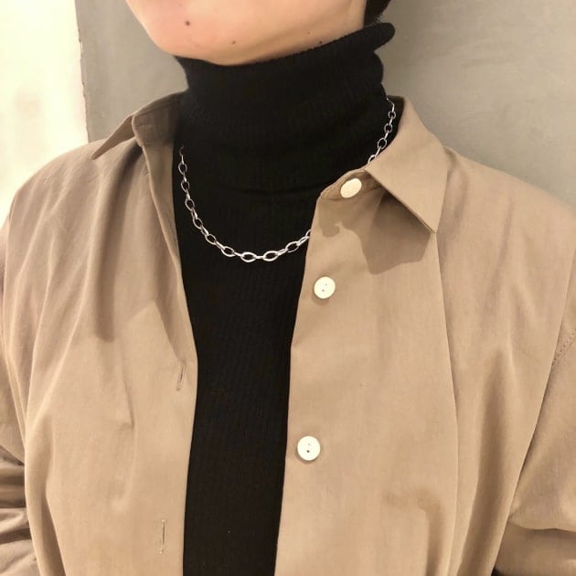 曲線を描くチェーンが女性らしい印象になります。存在感もあり綺麗めなコーディネートにもぴったりですよ。