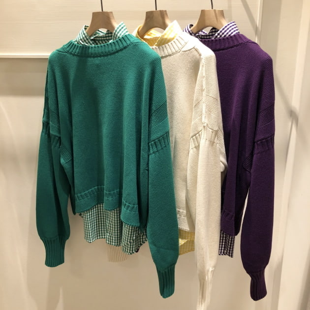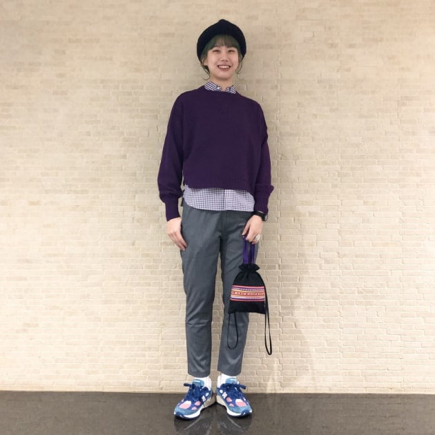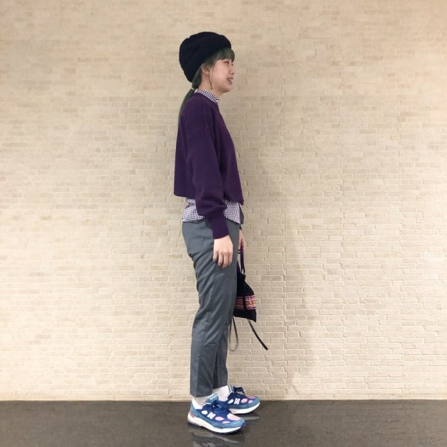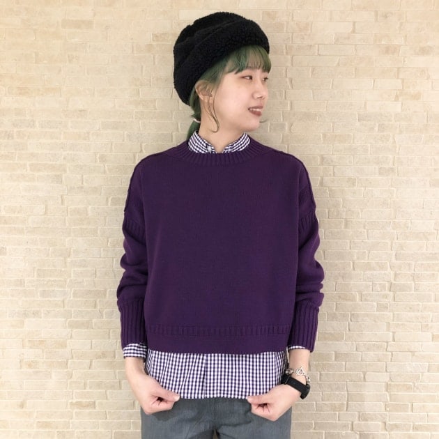 こちらのニットは少し短めの丈感で、さらっとした着心地がとっても可愛いです〜!