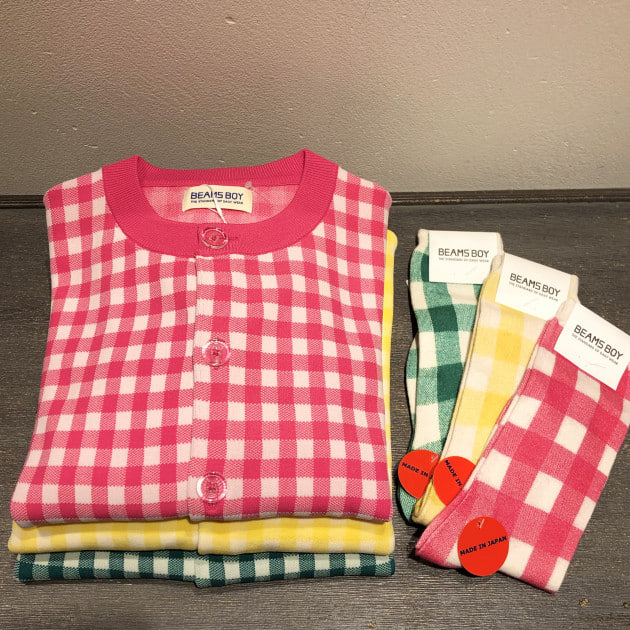 BEAMS BOY/14ゲージポリエステルジャガードギンガムカーディガン