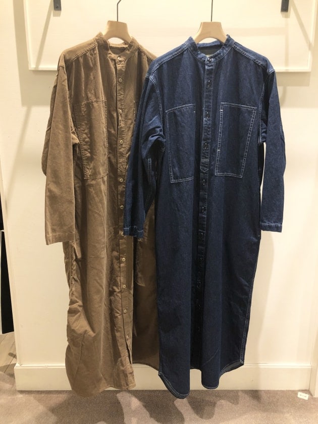こちらのデニムとコーデュロイのシャツワンピースと!