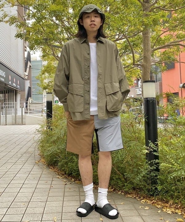 ミリタリー感を連想できるようなカラーリングで全体感のカラートーンを纏めてます。着用アイテムもちょっとしたアクティブシーンや水辺等でも楽しめるようなに取り入れて見ました。