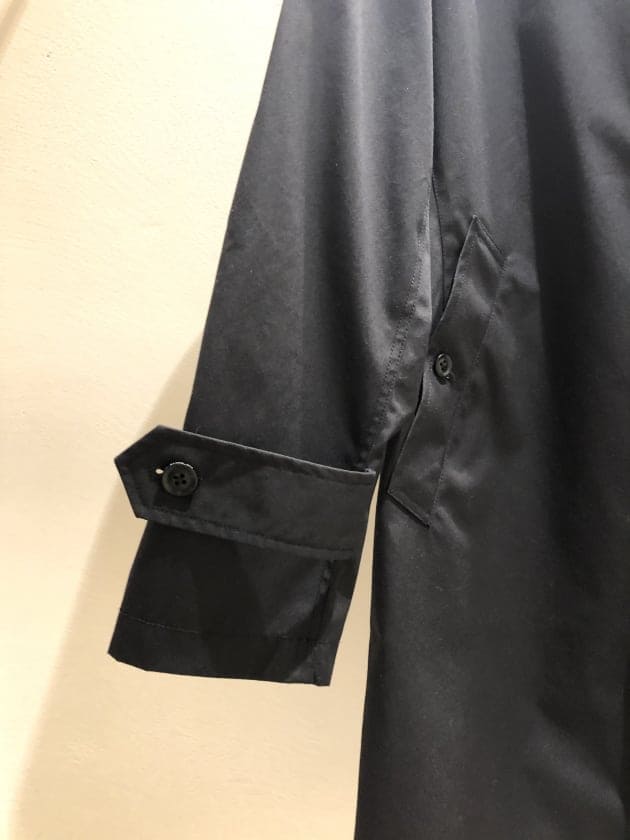 身幅や袖のゆとりに対して丈はやや短めのシルエット。画像だとわかりにくいですが、裾周りのパイピングがあるのもあっておさまりが良いです。