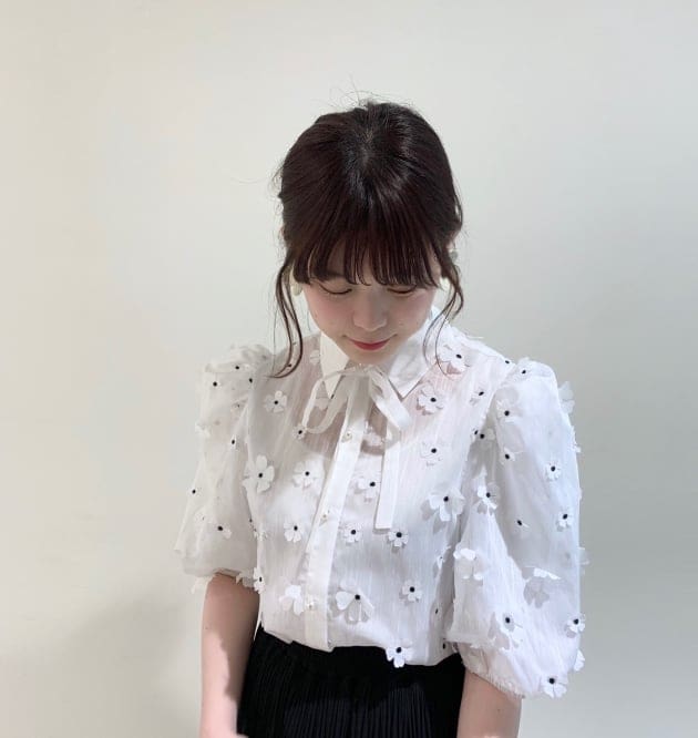 ジャガード素材で、首元や肩のフリルがとっても可愛い♡