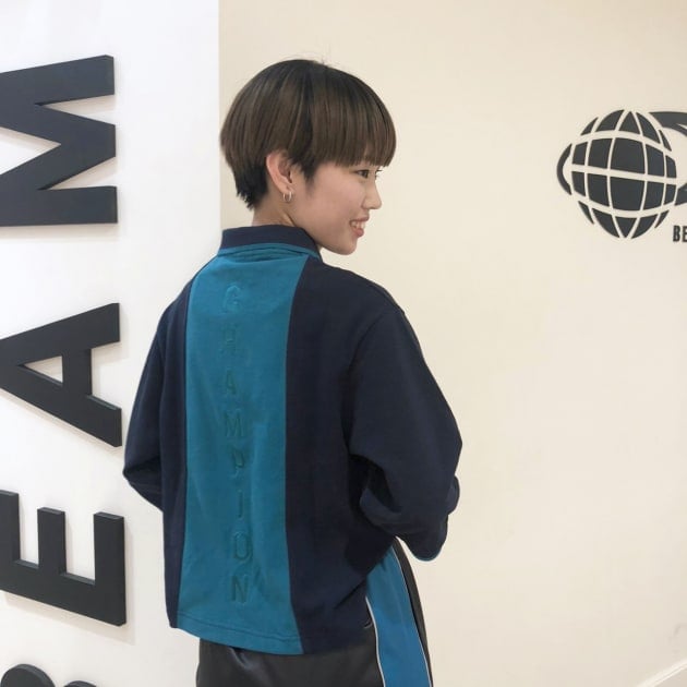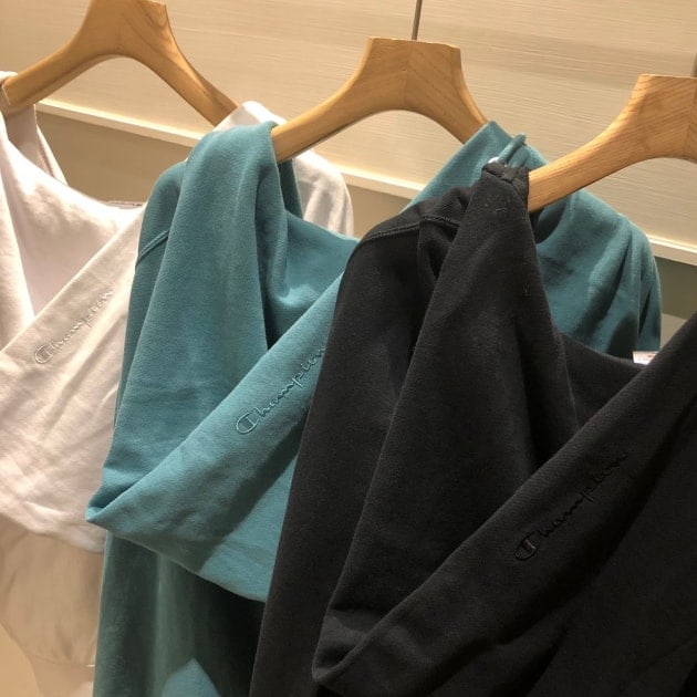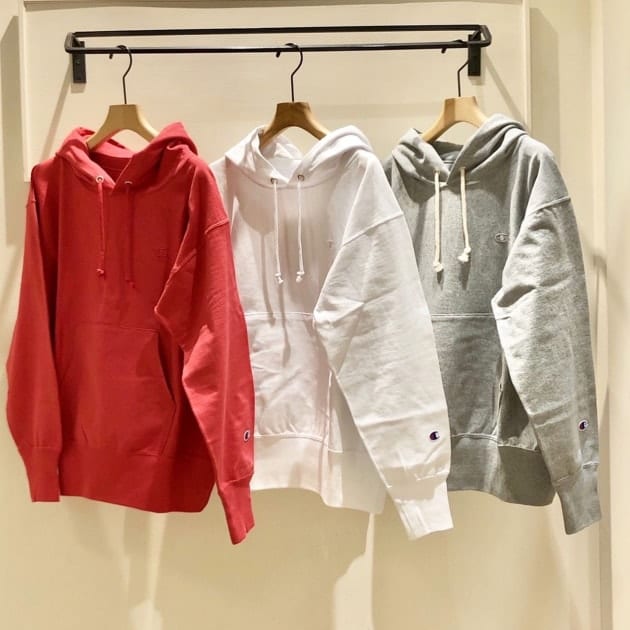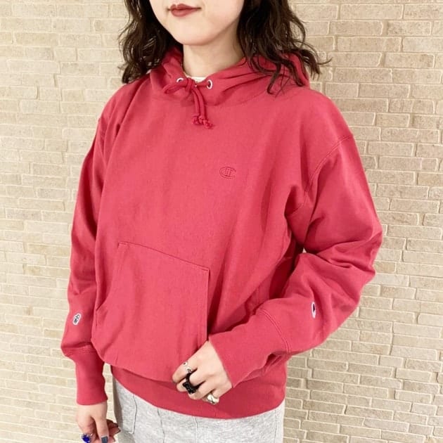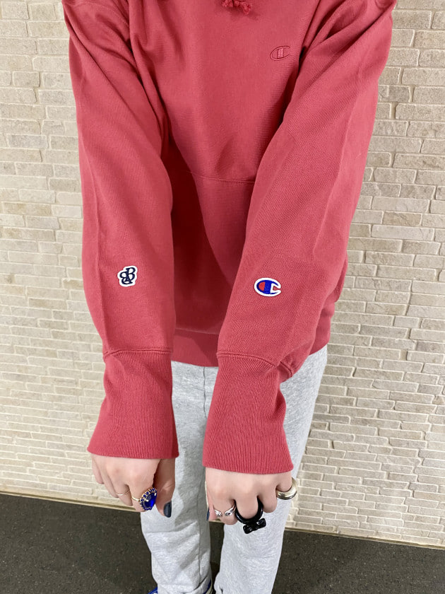 こちらもニットではなく、スウェット素材で、さらに<Champion>ならではの「リバースウィーブ」という製法で作られているので、お洋服が横方向に縮みにくい!