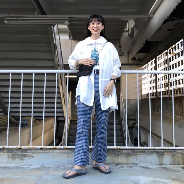 生地感は薄めなシャツ生地のような感じでさらっと着られます!