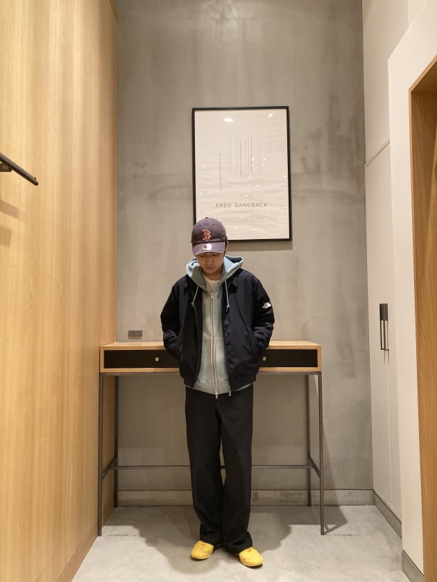 ローテクなこの感じにあえてのスラックスをチョイスするというのも個人的に刺さる履き方です!