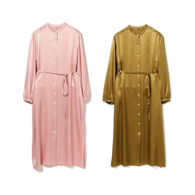 BEAMS LIGHTS/サテン 釦 ドロスト Vネック ワンピース