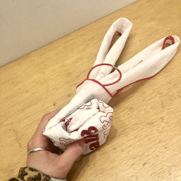 もう一方をポケット側にまとめて…