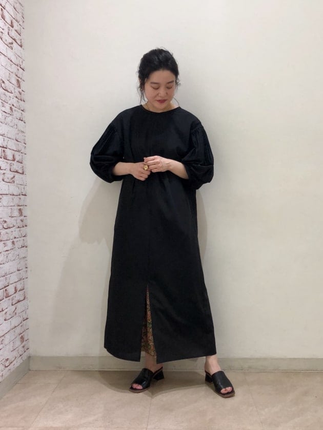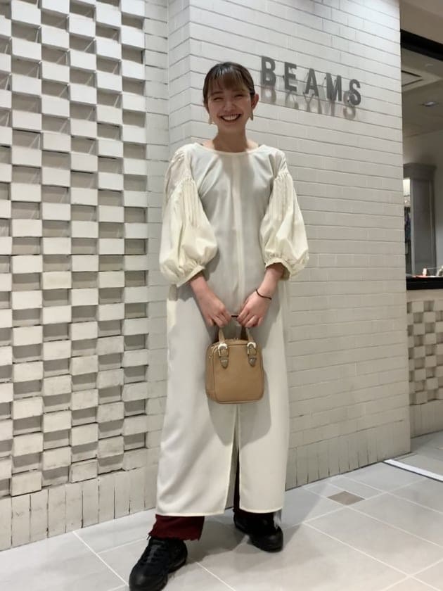 BEAMS LIGHTS/サテン 釦 ドロスト Vネック ワンピース