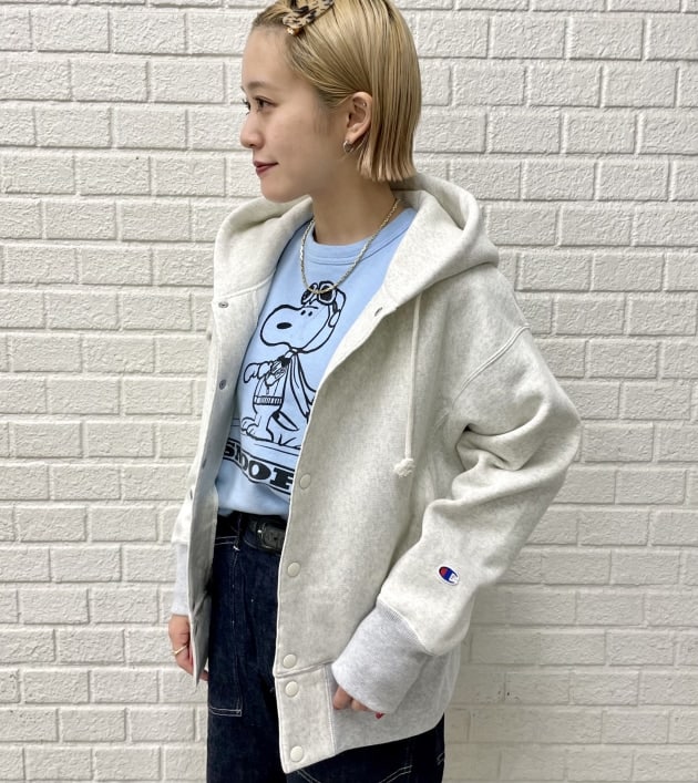 長すぎない丈感でコンパクトに来て頂けるパーカーです。