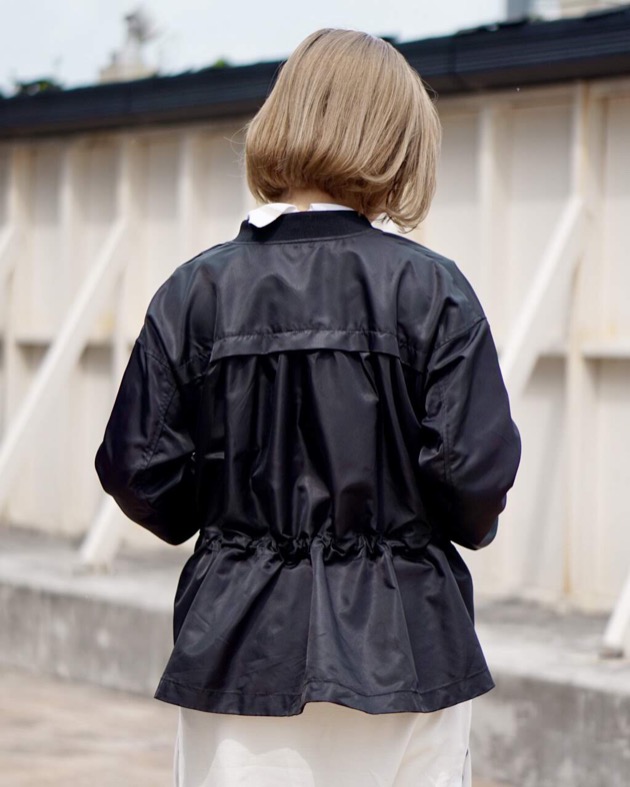 ウエストと裾に付いているドローコードでシルエットを変えられるので、マンネリ化しにくいですよ!